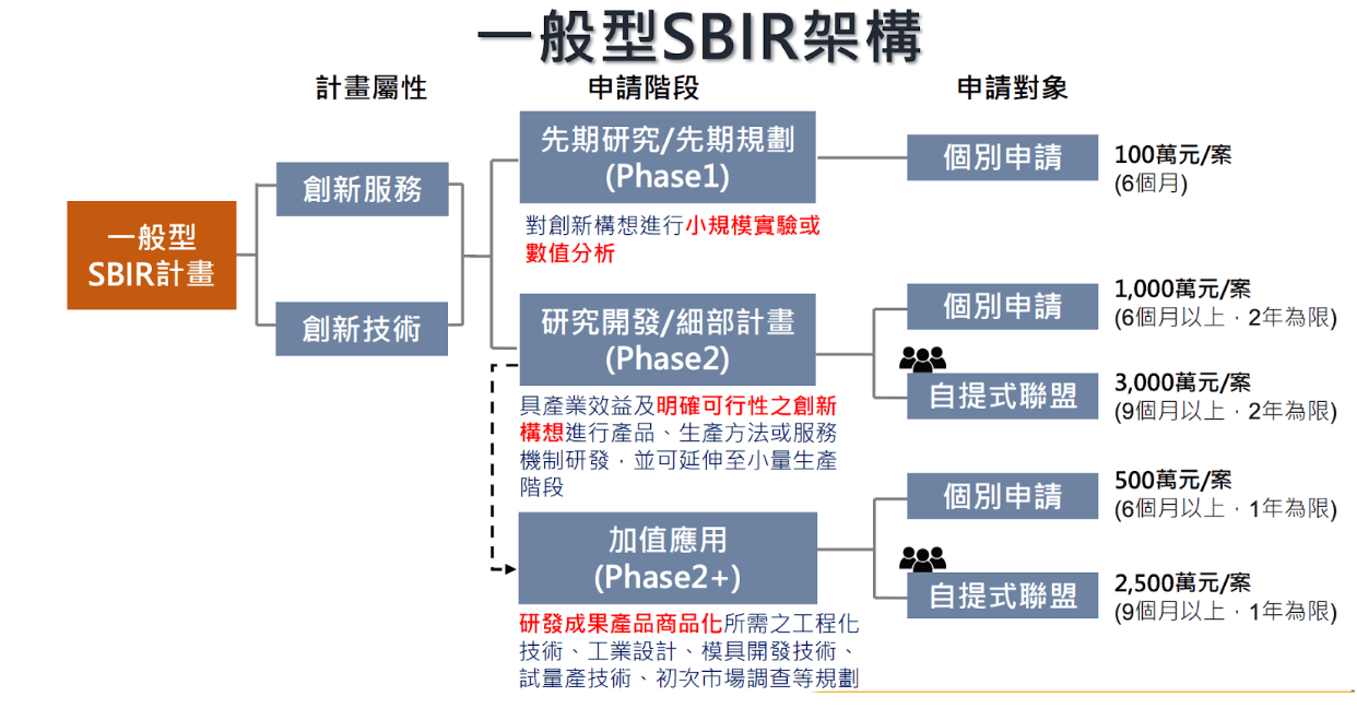 經濟部推行的 SBIR(Small Business Innovation Research)補助計畫,其主要目的是提升企業的技術能力、研發實力及市場競爭力。SBIR補助計畫涵蓋了研發人員薪資、耗材、原材料、技術轉移費用(購買)及服務採購等方面費用,透過這些資源支持,企業能更專注於創新研發,縮短從創意到市場的路徑。所以只要是獨特於市場現況的創新產品、研發製程,都可以申請,依照不同的研發階段,補助經費也不同。